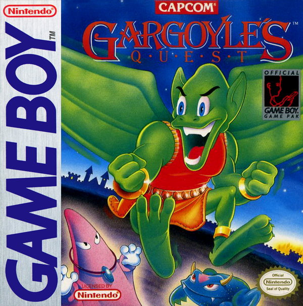 Gargoyle's Quest is a 1990 Game Boy side-scrolling horror action-adventure platformer video game developed by Capcom and released by Capcom USA in the USA on July 1, 1990. The game consists of two gameplay styles. One half has the player traverse an overhead view, either on the world map or in towns. This is broken up by the other type of content: individual, action-platforming levels that sometimes feature a boss at the end. While traversing in the sections with an overhead view, the player is able to talk with residential ghouls and, if outside a town, is susceptible to random battle encounters. The player then must defeat the enemies in order to return to the overhead-view map. While on the overhead map, the player occasionally comes across ghouls who want to fight Firebrand for various reasons. Firebrand can walk, jump (progressively higher with time), cling to walls using his claws, hover for a period (progressively longer with time), and fire offensive projectiles. The player starts with a weak projectile, but progressively gains new projectiles which grant more power and special abilities. Firebrand starts with two hit points, but gains more throughout the game based on items or blessings obtained; various enemies and objects drain different amounts of his health, represented by the hit points. Throughout the game, the player gains various items including passive ones that increase Firebrand's abilities outright. Eventually, Firebrand acquires an item that allows the player to hover without ever needing to rest on the ground. A healing vial can be used to restore health. Additionally, the offensive projectiles that are learned over time each have unique traits or specialized uses. The Blockbuster, for example, is more powerful than its predecessor and can destroy special walls blocking the player's path. Another projectile temporarily covers sharp vertical surfaces allowing Firebrand to reach higher locations. These abilities guarantee a use for such projectiles even after more powerful projectiles are obtained, and provide a depth of valid options for attacking foes. Projectiles can be selected from a drop-down, pause menu at any time, same as healing vials.